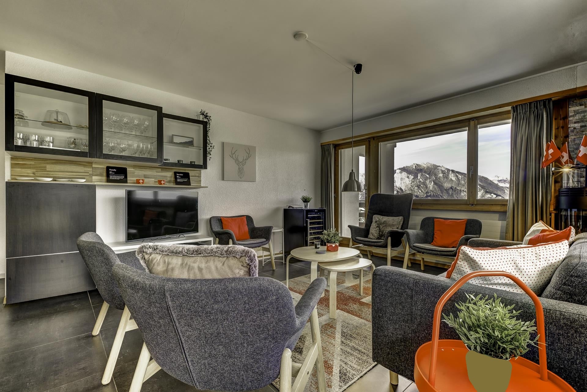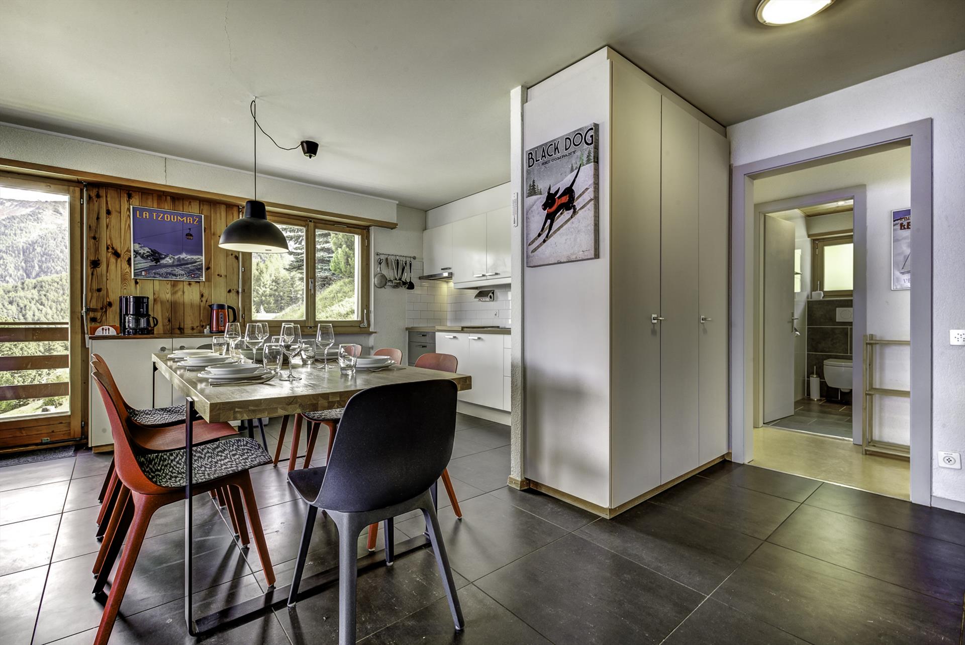 Modern and romantic apartment in La Tzoumaz, 4 Vallees, Switzerland for 10 persons. The apartment is situated in a mountainous area, close to restaurants and bars, only 50 m from the skislope and the skilift.