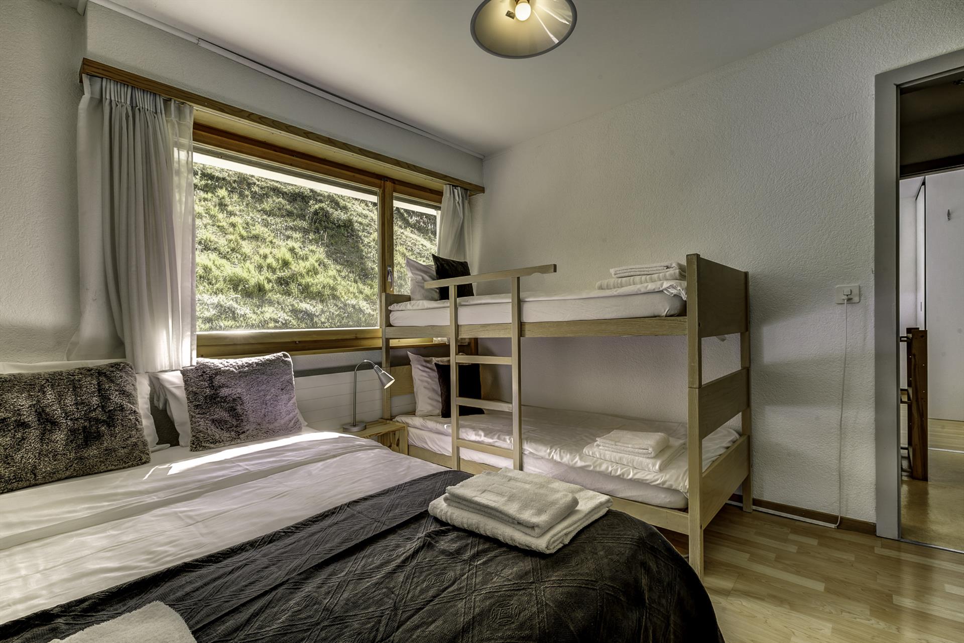 - bedroom with double bed (measuring 190 by 135cm) and bunk beds for two further people (each measuring 200 by 90cm)