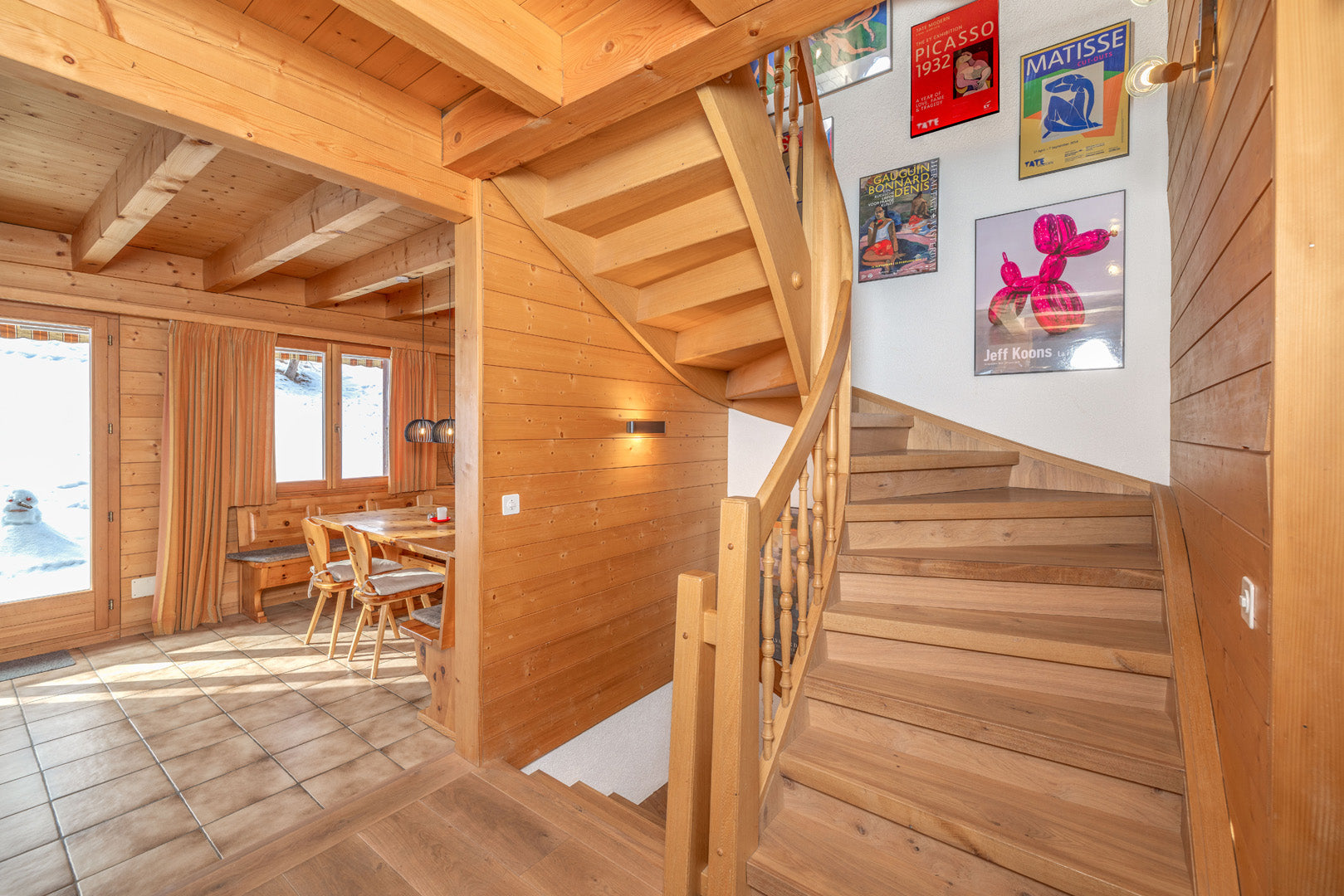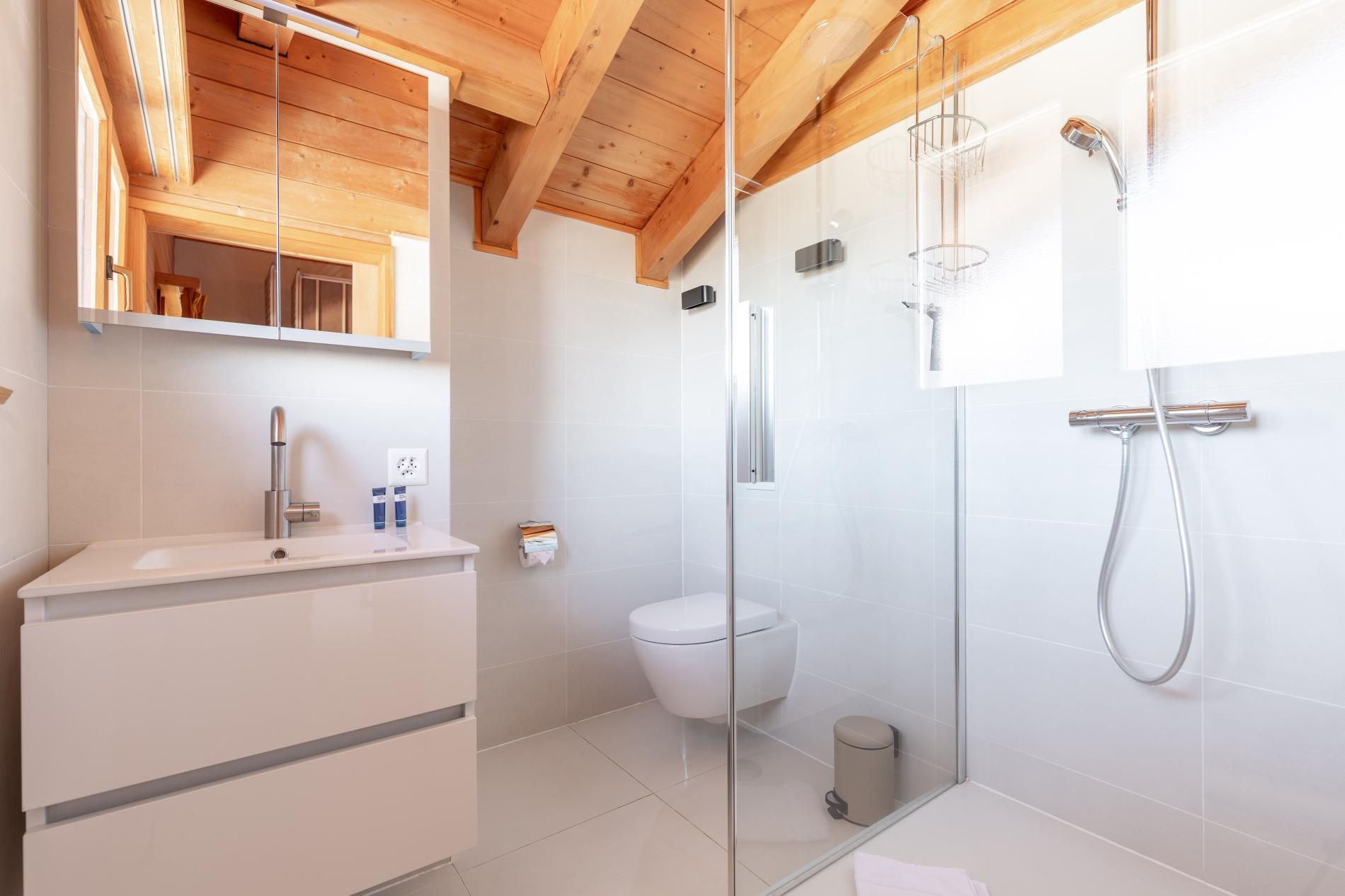 The spacious living and dining areas are characterised by bay windows windows that frame the stunning views of the 4 Valleys. This timeless architecture follows on from the traditional houses in the area with the warm-surfaced finishes of the interior and the traditional wooden exterior. Traditional materials such as wood and various natural stones are used consistently throughout the chalet. If you are looking for a Swiss authentic feel, then this is the chalet for you.