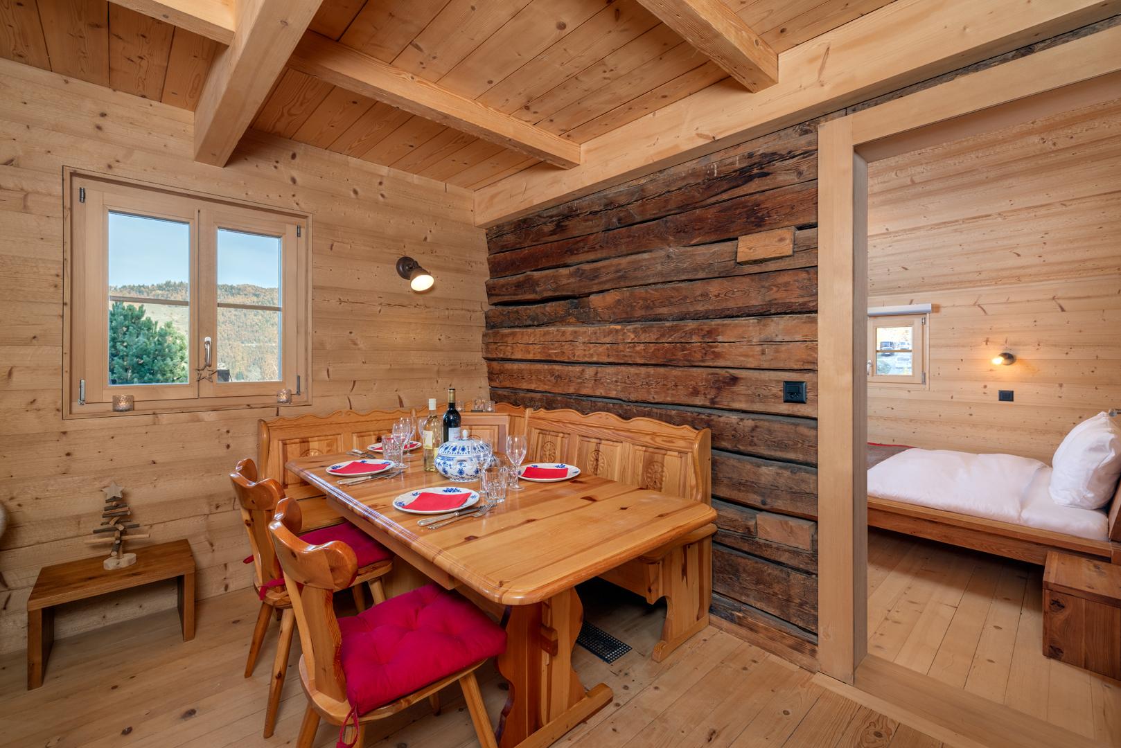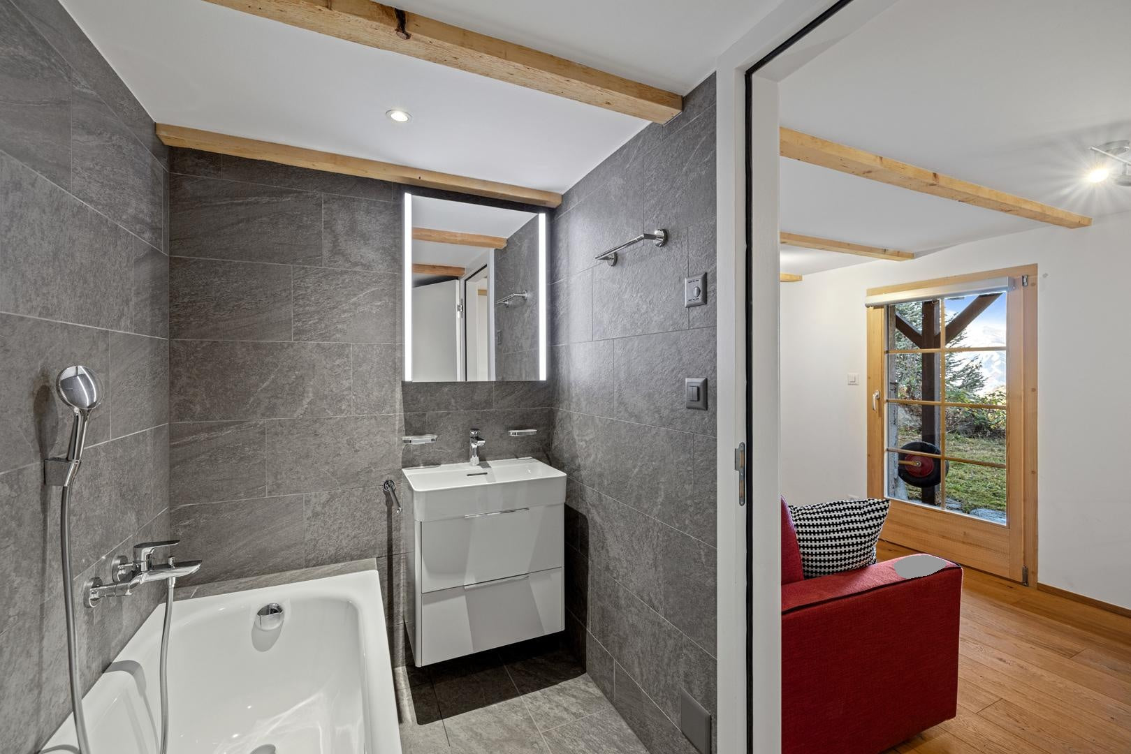 This inviting chalet features three bedrooms, two bathrooms, and ample space for relaxation after a day exploring La Tzoumaz’s breathtaking landscape. The open living area includes a fireplace for cozy evenings, dining space for shared meals, and a fully equipped kitchen with everything you need to prepare, from a quick breakfast to a hearty dinner.