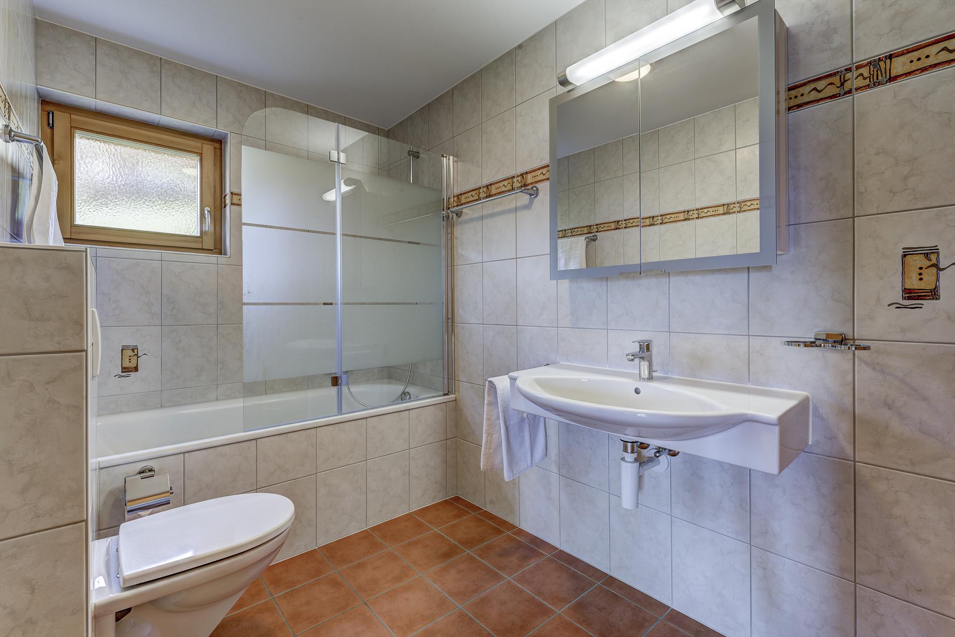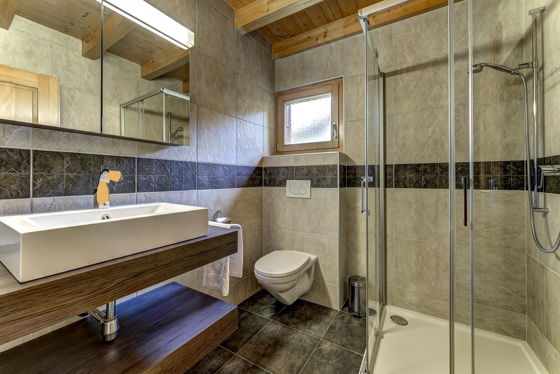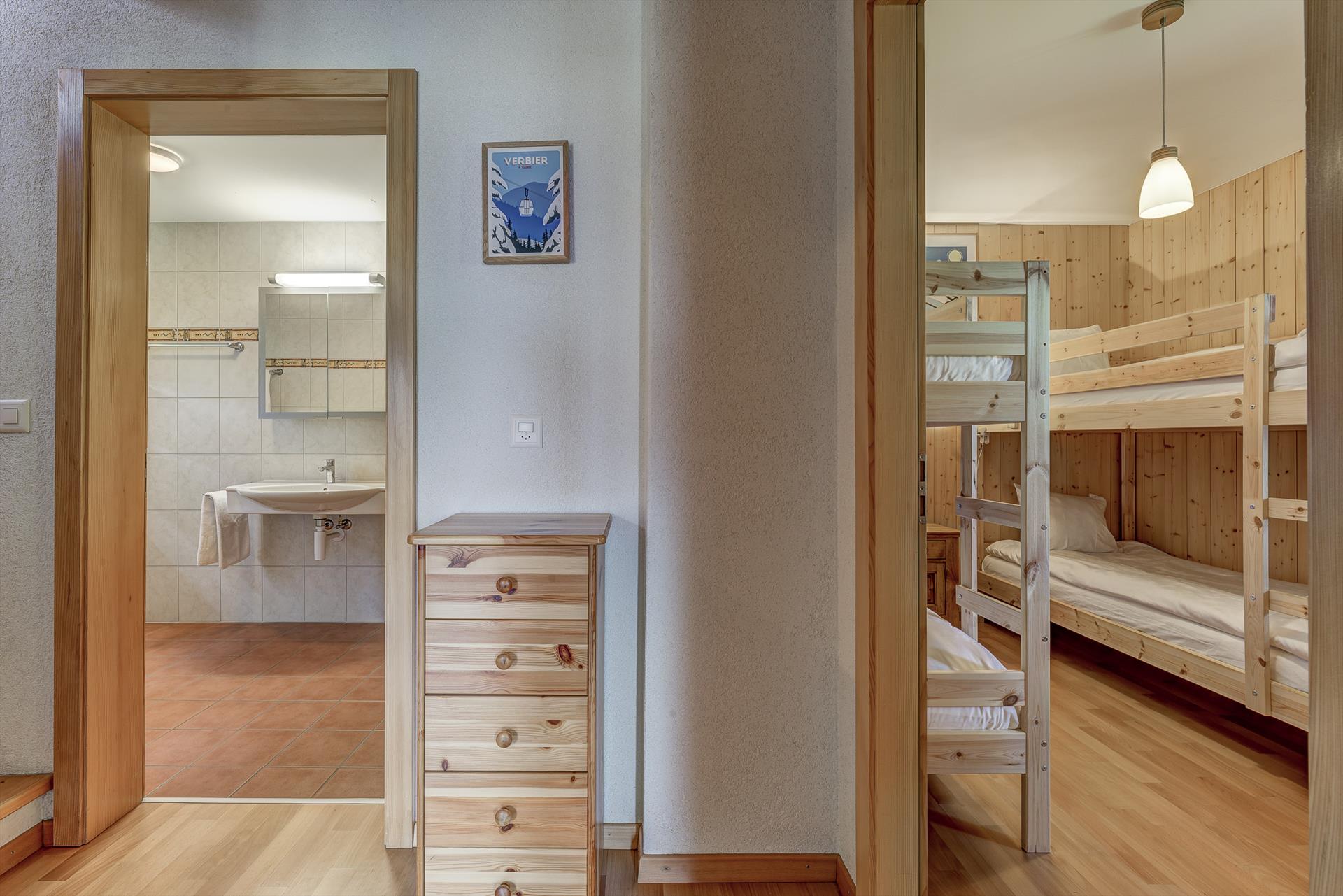 The main floor of this large chalet is an open kitchen/living/dining area with a cosy wood-burning fireplace. The kitchen is fully equipped with everything you might need for family catering, including a dishwasher, microwave, electric filter coffee machine, Nespresso coffee machine, oven, hob and separate freezer. There are fondue and raclette sets for a traditional Swiss evening in front of the log fire. A washing machine, tumble dryer, iron and portable outdoor gas barbecue are all available for you to use. The chalet is equipped throughout with individually-adjustable electric heaters. The chalet has a very soacious ski room with benches in the garage, helping you to keep all your mountain clothing and equipment dry and organised.